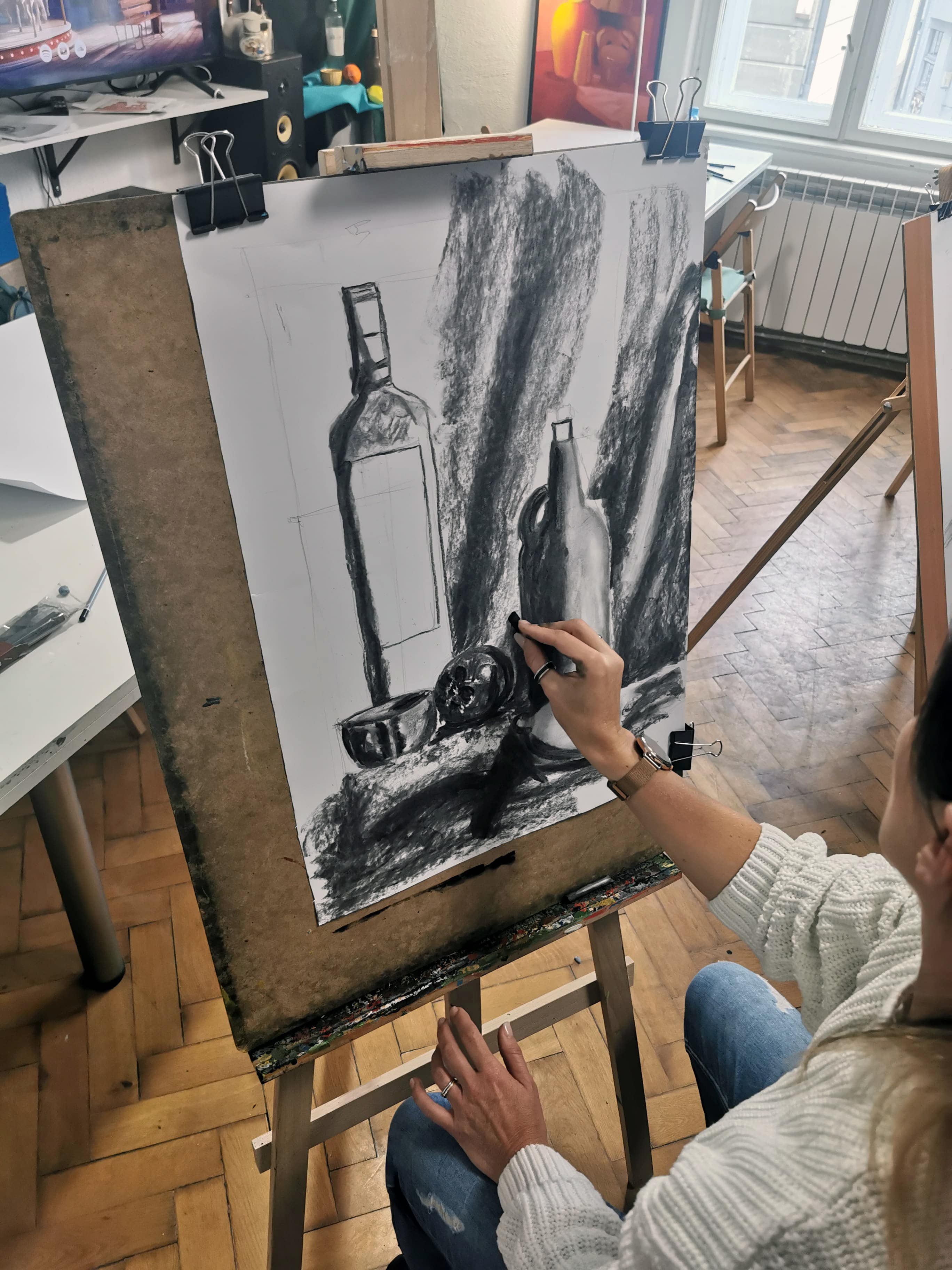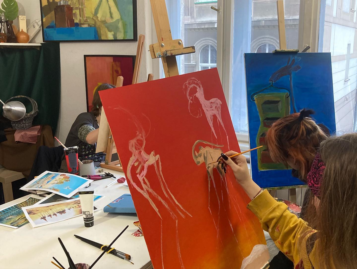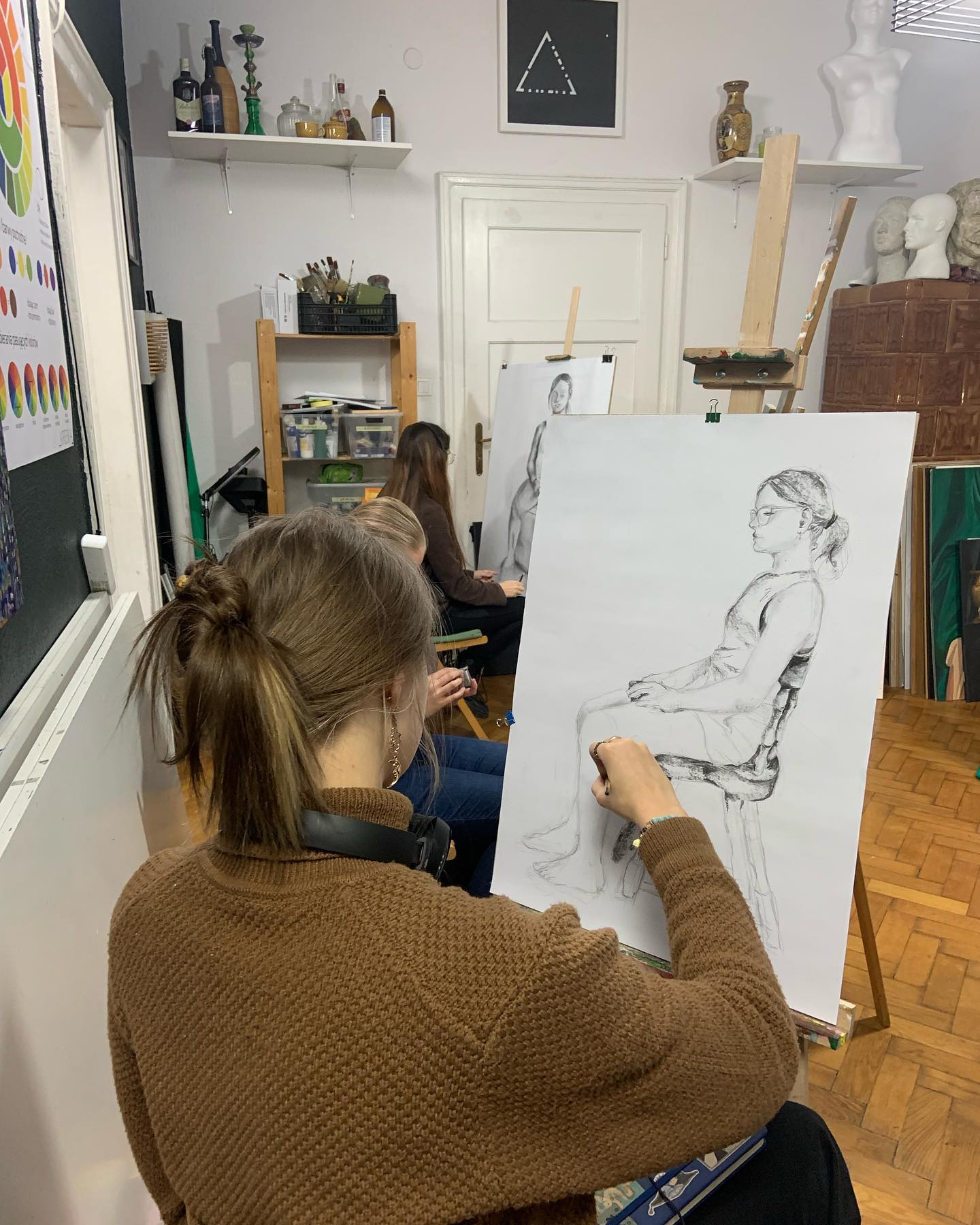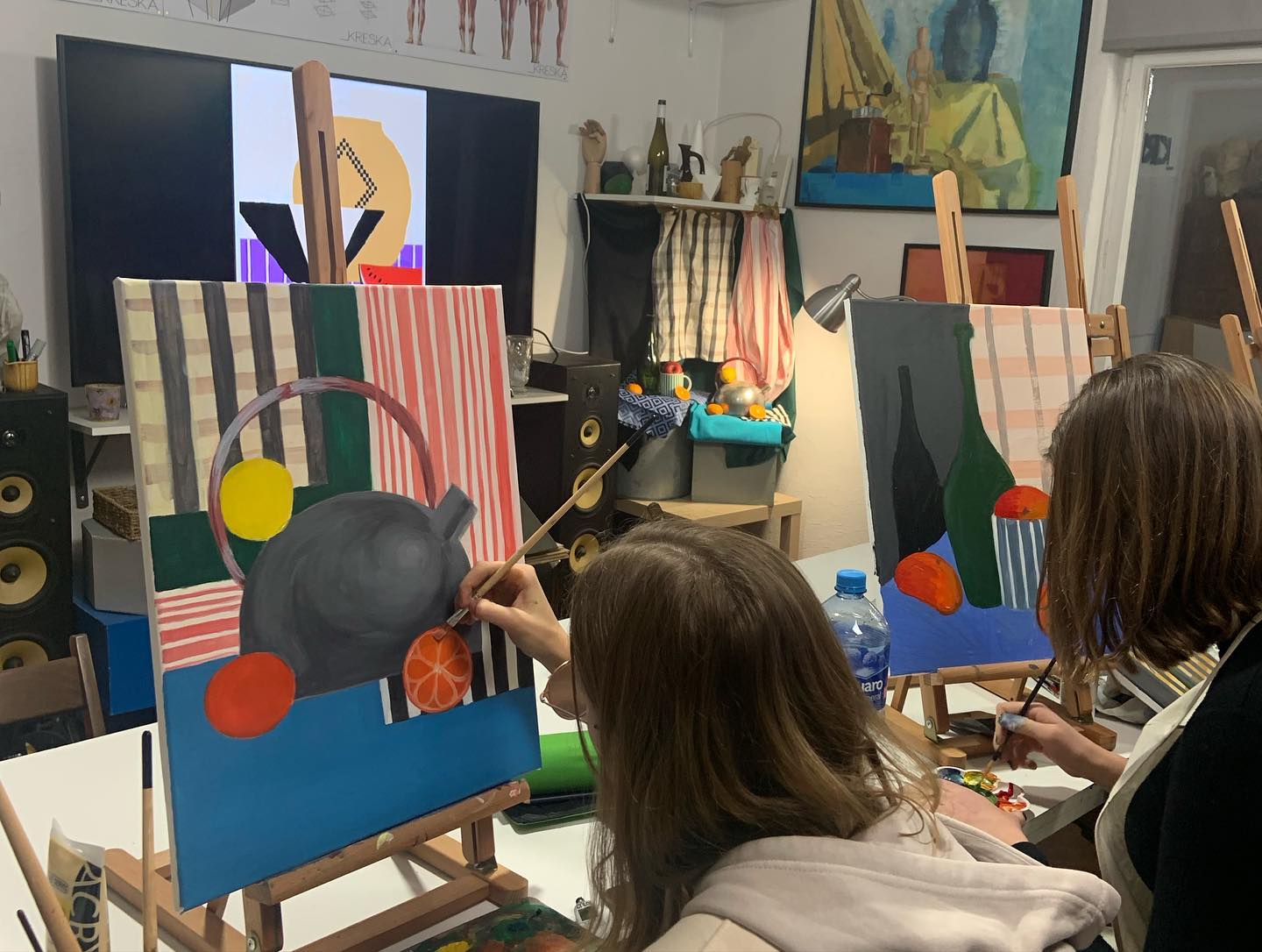 Nauka podstaw perspektywy, martwa natura - kompozycja zamknięta i otwarta, różne techniki malarskie oraz rysunkowe, grafika warsztatowa - linoryt, monotypia, sucha igła, tematy abstrakcyjne, postać - model, krajobraz, tematy projektowe inspirowane różnymi technikami i stylami artystycznym, kolaż, tworzenie modeli, rzeźba ...