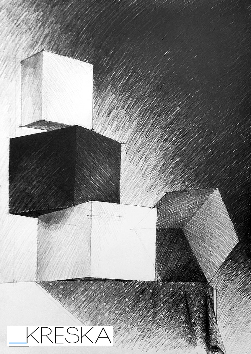 Zapoznanie się z pojęciami i zasadami tworzenia takich zagadnień jak: rzuty prostokątne, aksonometria, konstrukcje geometryczne brył (prostopadłościany, graniastosłupy, walce, stożki itp.), zasady perspektywy (jedno, dwu oraz trój zbiegowa), konstrukcja brył platońskich oraz złoty podział. W jaki sposób wyznacza się światłocień, przenikanie brył, odbicia lustrzane, proporcje ludzkiego ciała. Ważna jest również wiedza z zakresu projektowania zieleni oraz małej architektury w krajobrazie oraz oczywiście martwa natura.