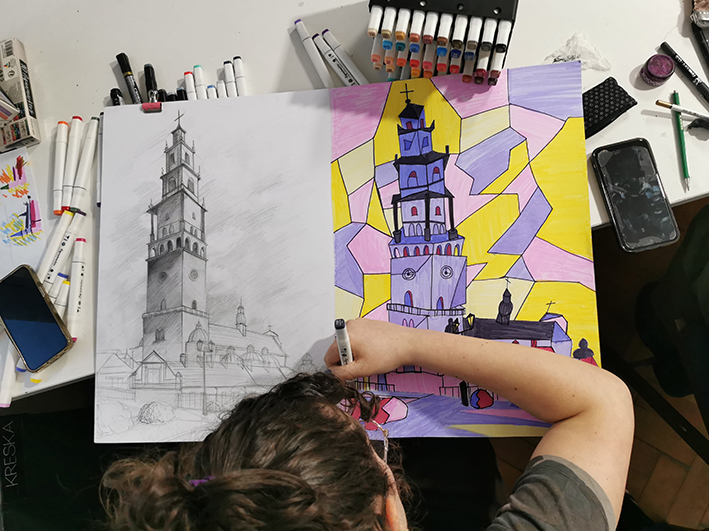 Naszym głównym celem jest wykształcenie w uczniach myśli przestrzennego patrzenia, zauważenia zależności w przyrodzie i architekturze, poczucia estetyki w myśl konstrukcji perspektywicznej.